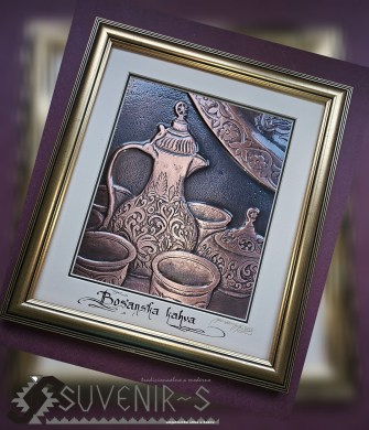 Zidne slike - bakrorezi su urađene sa najzahtjevnijom preciznošću detalja u visokom reljefu, tradicionalnom tehnologijom koju krasi vještina ručnog umjetničkog zanatstva. Poseban šarm i unikatnost im daje ručno ispisivanje naziva motiva latiničnom kaligrafijom na paspartuu.