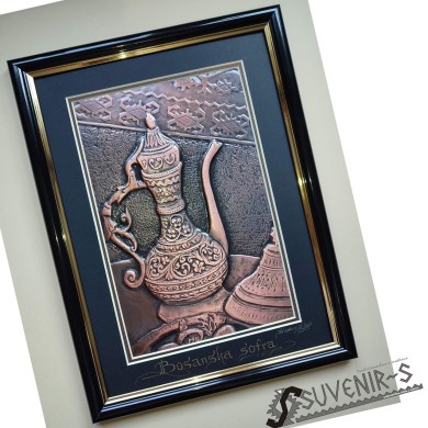 Zidne slike - bakrorezi su urađene sa najzahtjevnijom preciznošću detalja u visokom reljefu, tradicionalnom tehnologijom koju krasi vještina ručnog umjetničkog zanatstva. Poseban šarm i unikatnost im daje ručno ispisivanje naziva motiva latiničnom kaligrafijom na paspartuu.