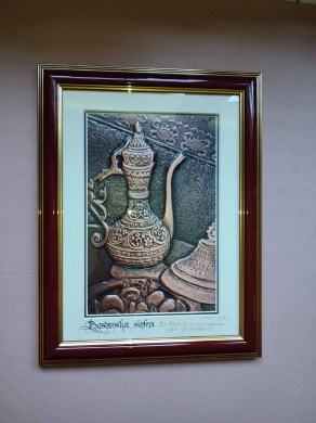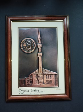 Zidne slike - bakrorezi su urađene sa najzahtjevnijom preciznošću detalja u visokom reljefu, tradicionalnom tehnologijom koju krasi vještina ručnog umjetničkog zanatstva. Poseban šarm i unikatnost im daje ručno ispisivanje naziva motiva latiničnom kaligrafijom na paspartuu.