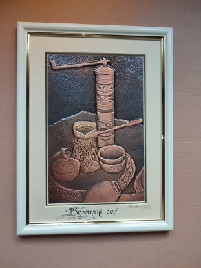 Zidne slike - bakrorezi su urađene sa najzahtjevnijom preciznošću detalja u visokom reljefu, tradicionalnom tehnologijom koju krasi vještina ručnog umjetničkog zanatstva. Poseban šarm i unikatnost im daje ručno ispisivanje naziva motiva latiničnom kaligrafijom na paspartuu.